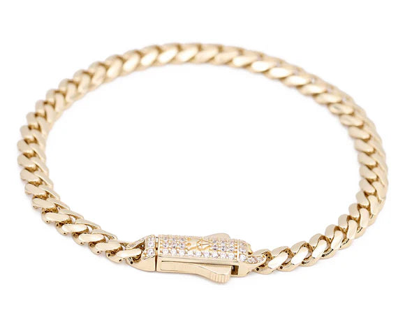 14K Yellow Gold Monaco Ancklet Bracelet / Size: 5mm 10" / Weight: 11.2gr / Stone: Cz / COAB0MON5-10